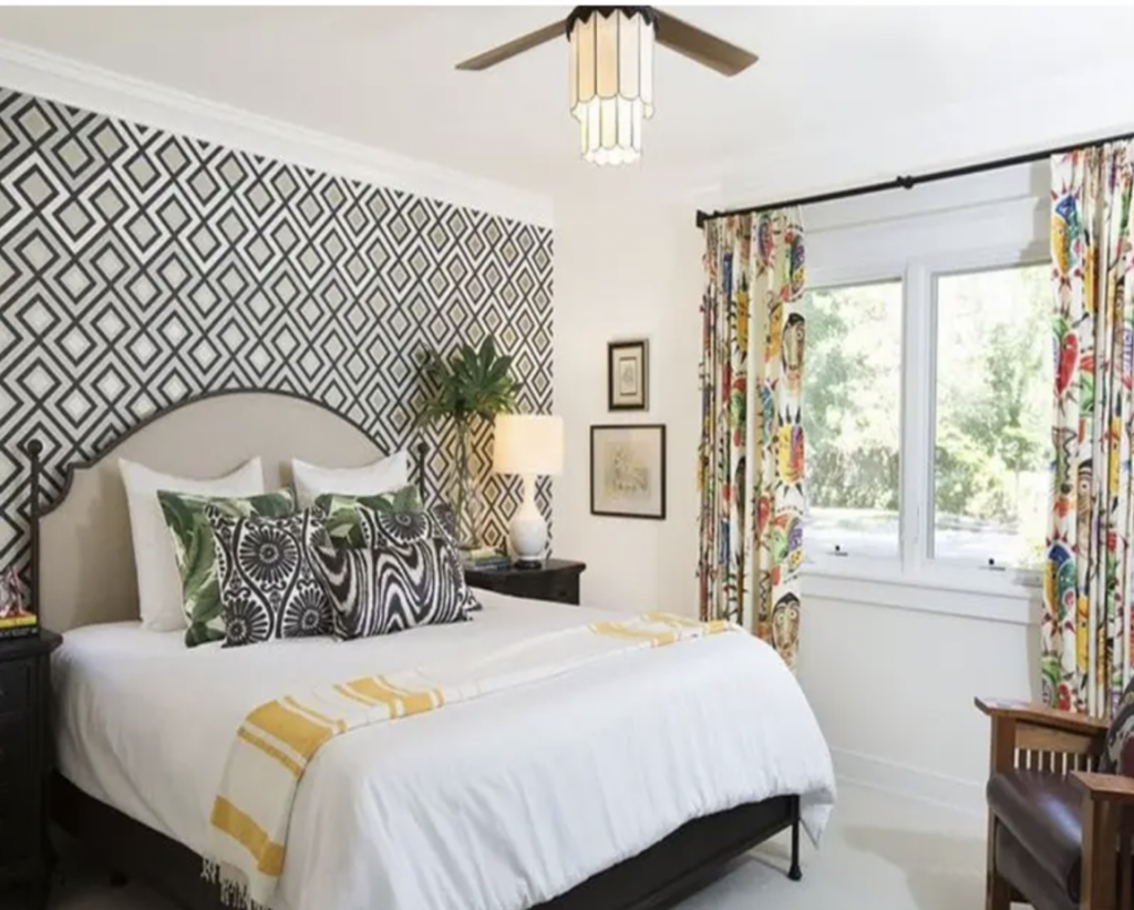 Keramik berpola geometris, seperti segitiga, persegi, atau heksagonal, memberi tampilan modern dan dinamis pada kamar tidur. Pilihan warna monokrom atau tone earthy akan mempertegas kesan minimalis. Pola geometris ini juga menciptakan visual yang unik, memberikan efek kedalaman pada ruangan.
